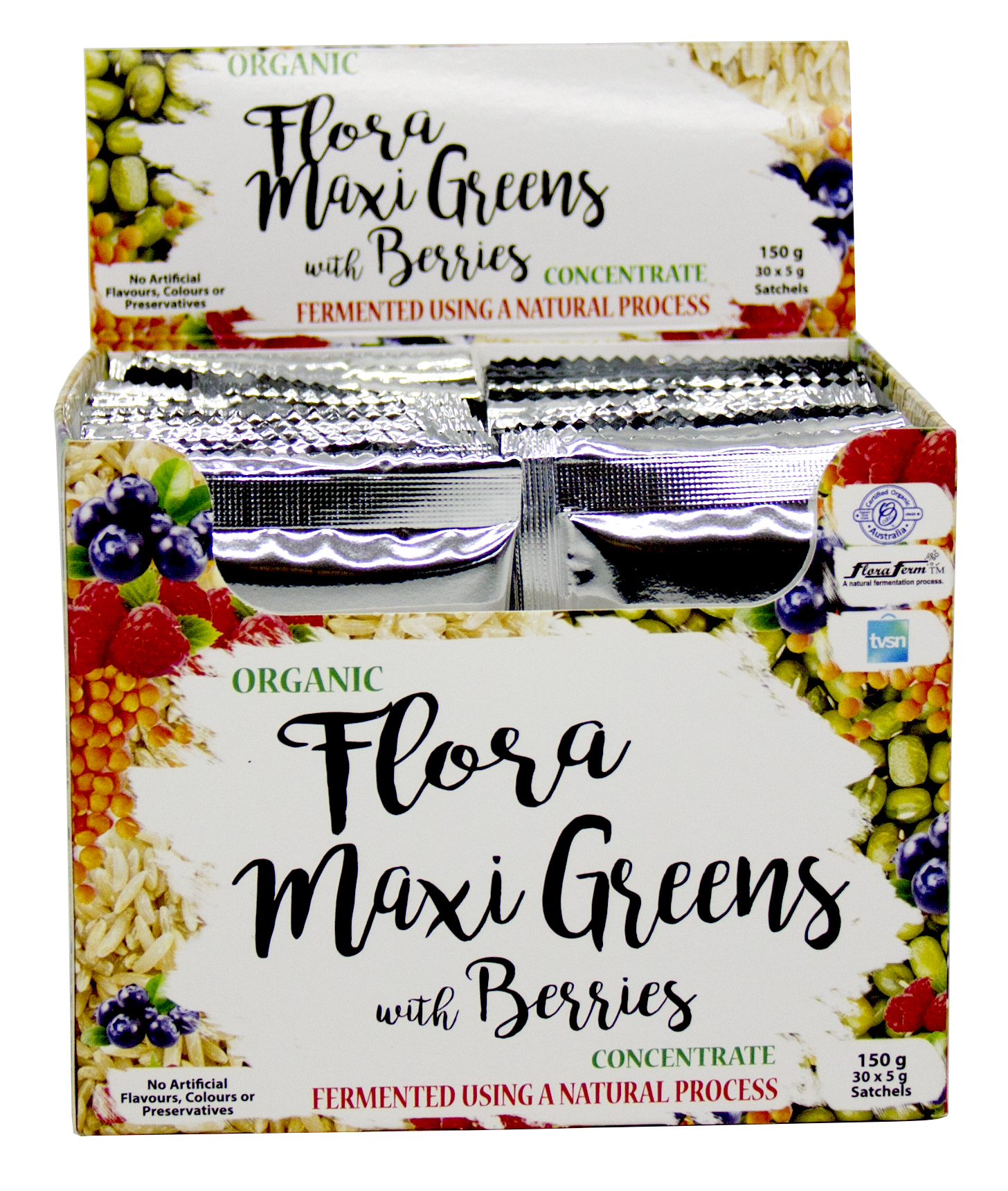Organic Flora Maxi Greens is an organically certified fermented wholefood powder with a delicious natural vanilla and berry flavour. Organic Flora Maxi Greens provides nutrients from a combination of amazing superfoods including spirulina, grains, berries and legumes.